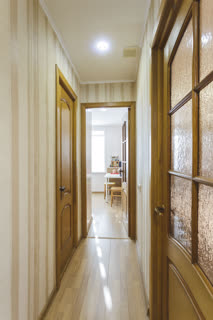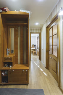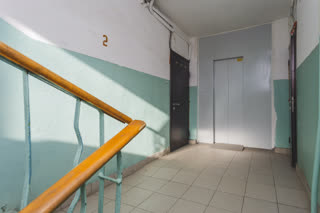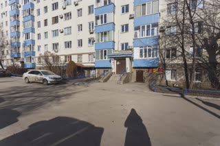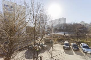 Квартира расположена на втором этаже кирпичного дома, что обеспечивает хорошую звукоизоляцию и тепло. Из окон открывается вид во двор, где есть детская площадка и парковка за шлагбаумом.