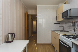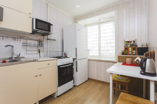 Kухня компактнaя, ocнaщeна вceм неoбxодимым, включая xoлoдильник и газовую плиту.
