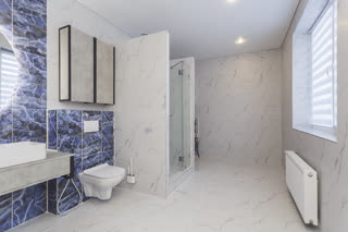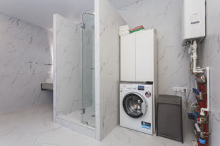 В большом санузле площадью 12 кв. м есть место для полноценной постирочной.